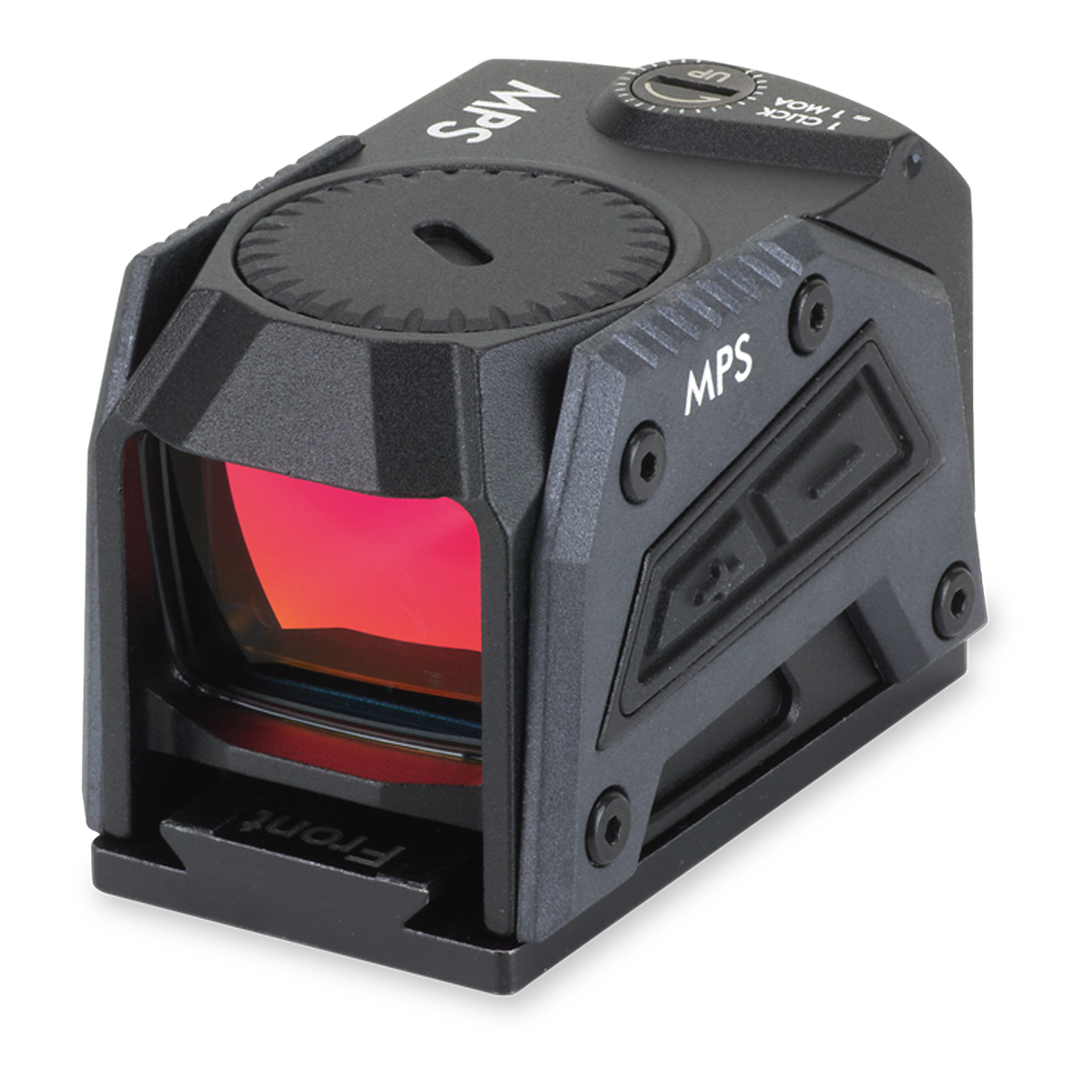 - The 13,000 hours of battery life puts the MPS on top of its class and the easily accessible battery compartment allows changing the battery without dismounting the MPS from the gun. A flashing red light indicates a low battery.