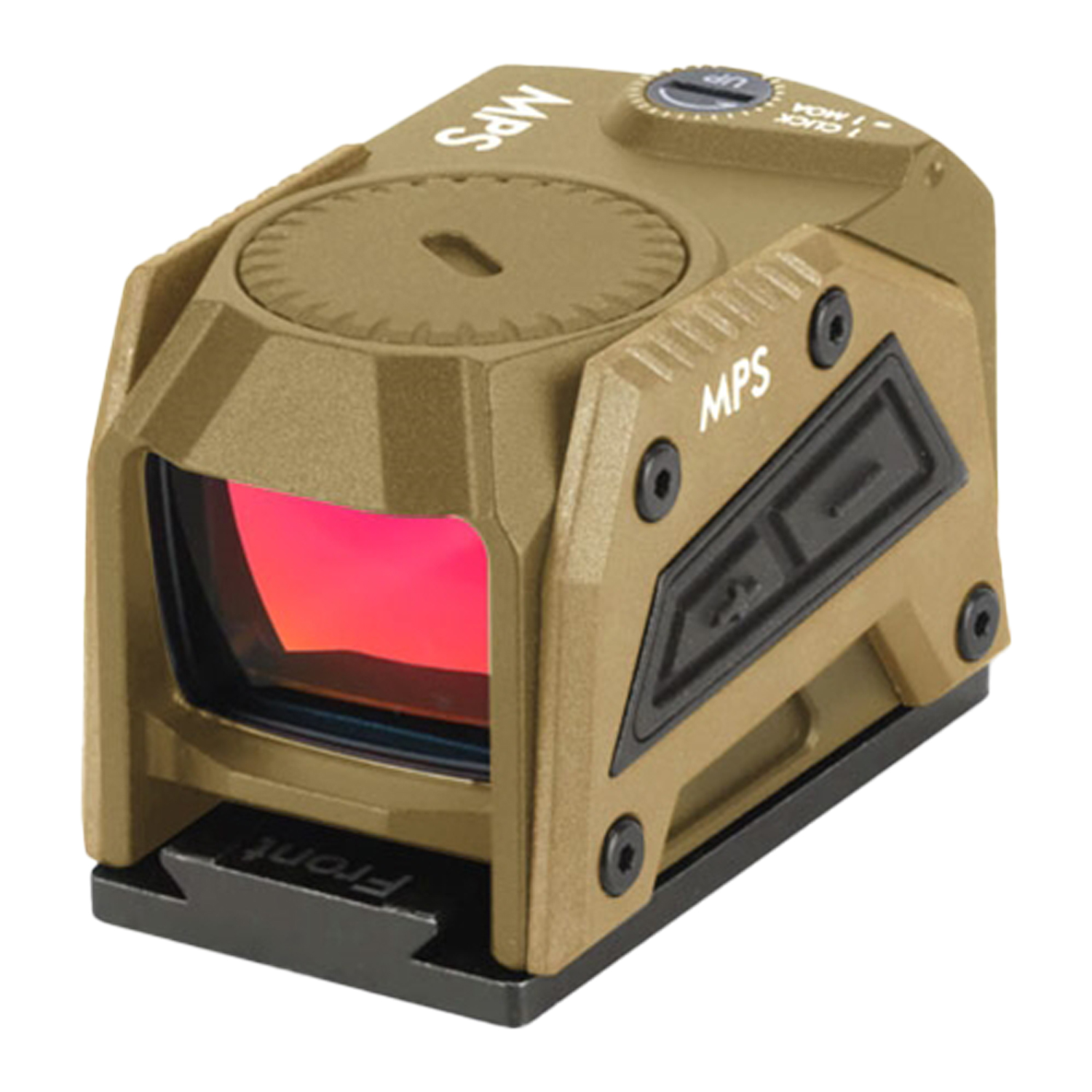 Description: Steiner Micro Pistol Sight, FDE. Steiner brings battle-proven durability and mil-spec ruggedness to pistol red dots with the NEW MPS (Micro Pistol Sight). At 2.05 oz, the Micro Pistol Sight is compact and lightweight offering Steiner quality glass and a robust feature set including 8 brightness levels, and 13,000 hours of battery life. The Micro Pistol Sight is designed to fit an ACRO footprint and is compatible with most optic-ready pistols using ACRO baseplate adapters.