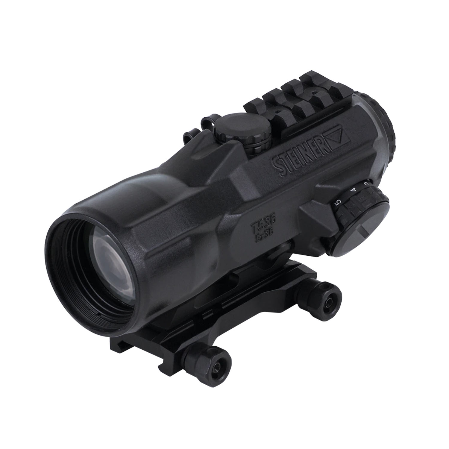 Description: Steiner T536 T-Series Sight, 5x36 5.56 Reticle. Compact, rugged and lightweight; the T-Series prism weapon sight is an ideal option for many weapon systems - especially the AR platform. The 5x magnification prism red dot sight features a Rapid DOT reticle calibrated for 5.56 caliber ammo. Throw this compact and effective sight onto the Picatinny rail of your favorite urban rifle to experience the value of a powerful sight in a small package. The T-Series sight has a small Picatinny rail on the top of the unit to allow installation of a small backup red dot, light, laser or other accessory. Achieve quick and easy target acquisitions and enjoy multiple brightness settings with windage/elevation adjustments to ensure that the prism sight will be effective in any scenario. Outfit your firearm with a Steiner prism sight and experience the difference a quality sight can make.
