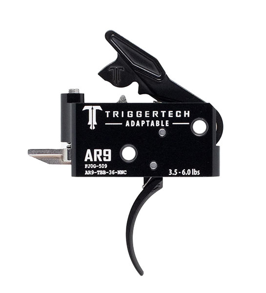 Description: TriggerTech AR-9 Adaptable Trigger, Curved. The Adaptable Trigger is an ideal upgrade to your AR-9 platform firearm to improve accuracy and precision with every shot. Drop-in ready and having an adjustable pull weight between 3.5 lbs and 6 lbs, this curved trigger utilizes the patented Frictionless Release Technology to achieve a crisp and reliable trigger pull; more so than any other trigger on the market. A cleaner pull of the trigger translates to more accuracy in every shot. Perfect for competition, hunting, harsh environments, law enforcement, precision shooting, targets, and more; TriggerTech AR-9 triggers are made with the highest of standards and materials.