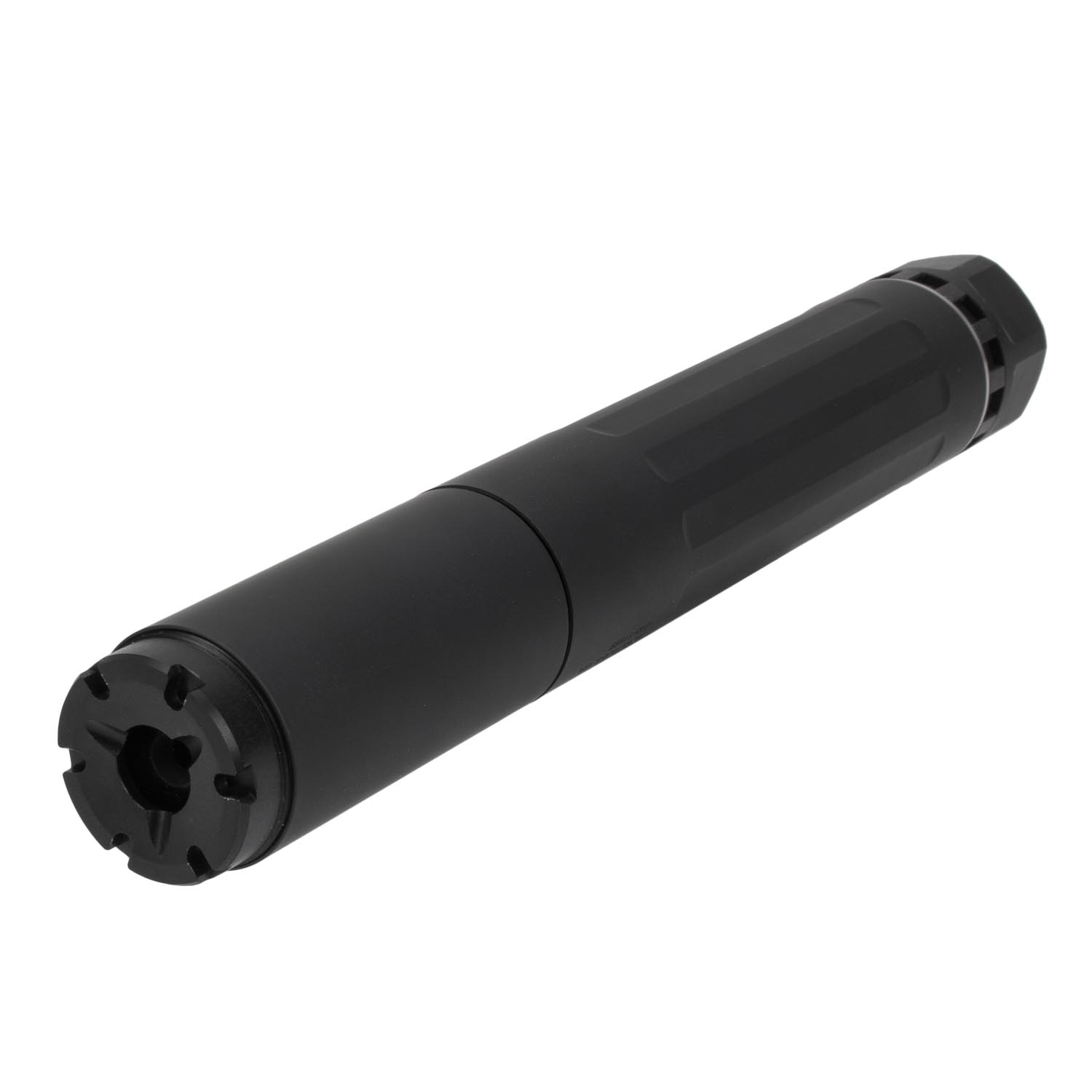 Description: Dead Air Ghost-M Suppressor, .45cal, Black. Manufactured from a strong blend of black Cerakoted titanium, stainless steel and aluminum in the right places, the Ghost-M can from Dead Air Silencers is the versatile sound mitigation device for your rifle or pistol chambered in a variety of calibers. The suppressor is full-auto rated and can handle calibers from .17 HMR up to subsonic .300 Blackout. The Ghost-M comes with a Booster Assembly which can accept many different pistons, fixed mounts or 3-lug adapters (all sold separately). With a diameter of 1.375" and a variable length of 6.2" / 8.75", the Ghost-M is an excellent sound suppression choice for your favorite firearm. Experience the unparalleled sound dampening power of Dead Air.